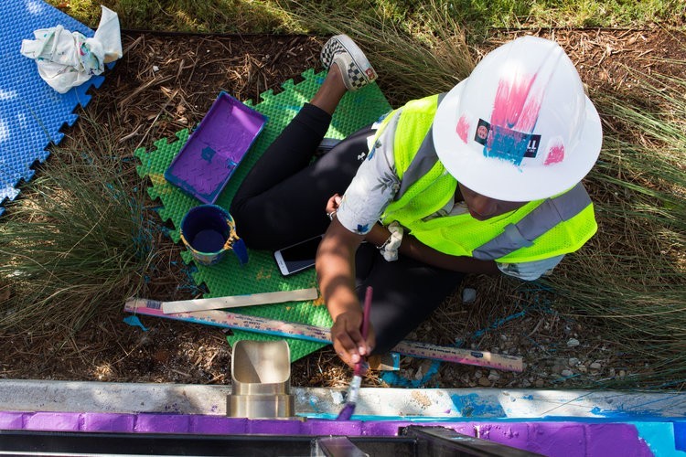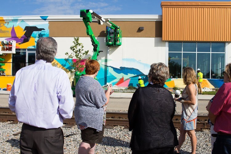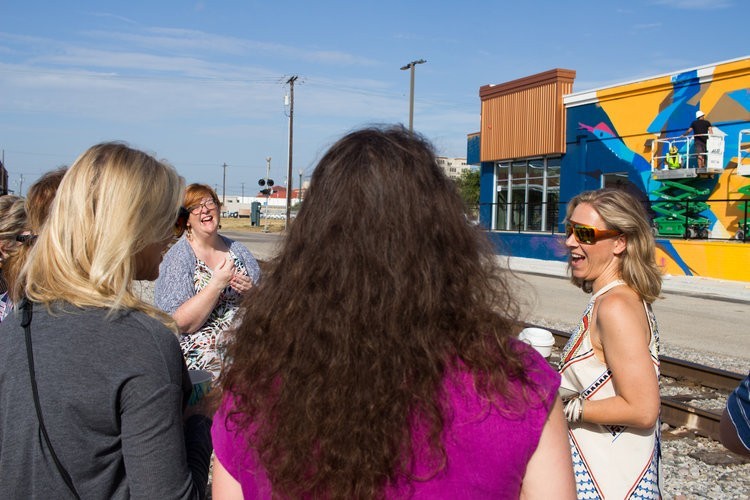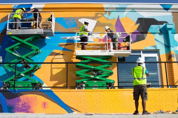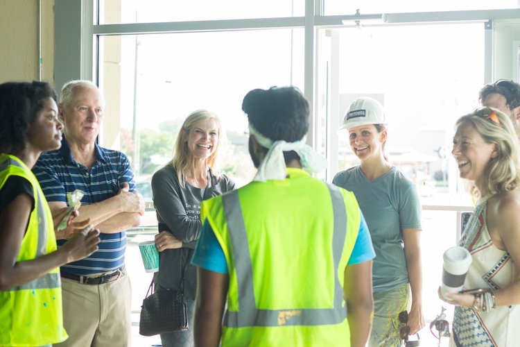 With much planning, diligence, and sweat, the ArtPrenticeship team of four teaching artists and 10 apprentices is more than halfway through the summer internship program. They've made great strides over the past several weeks despite several days of rain and are nearly finished with the mural. Below you'll see young creatives hard at work, as well as some of the incredible sponsors who popped in to see how things were going. These generous partners have agreed to supply a $600 stipend for each student at the conclusion of the program, helping Creative Waco reach its goal of paying a meaningful wage to every artist we work with — regardless of age.