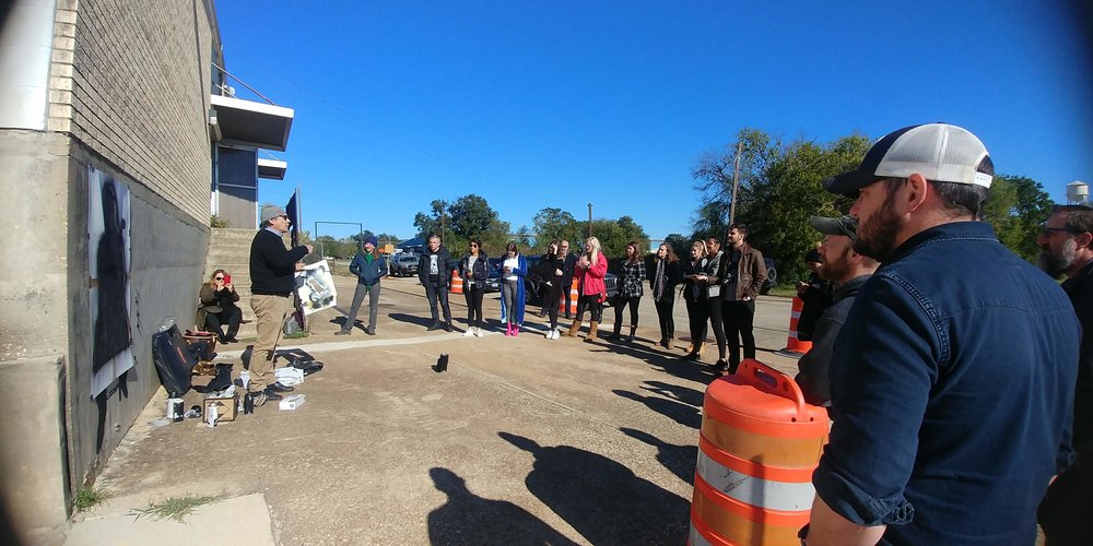 Thanksgiving #8 is for Brian Greif, Xavier (Blek le Rat), and Sybille Prou who poured themselves into our community, talking to high school, college and university students, artists, art lovers, passers-by, business and community leaders. Despite the frigid weather conditions (we promised them a balmy Texas fall), they brought warmth and curiosity to the project, ensuring that each piece of art was significant and meaningful for its context.